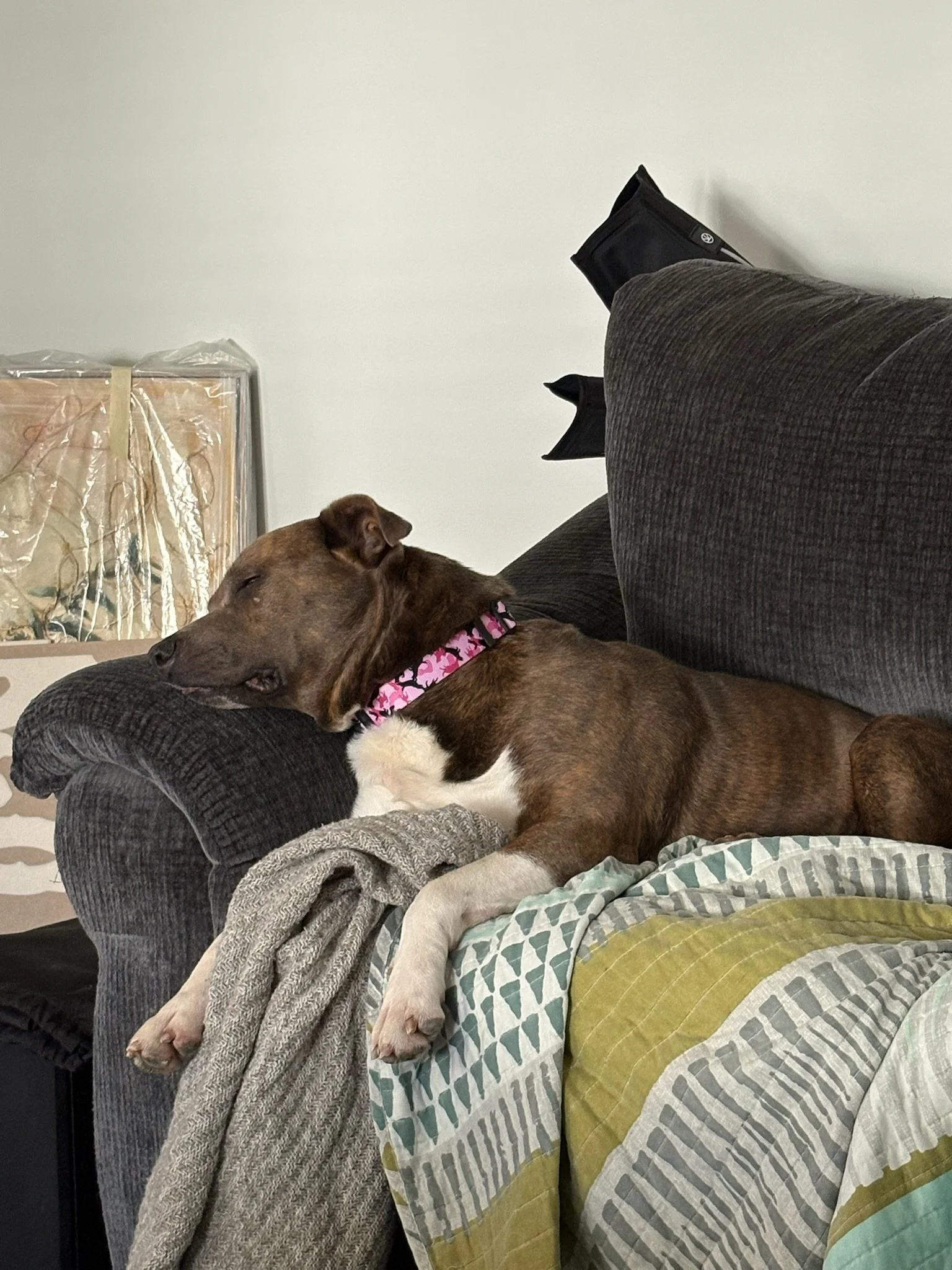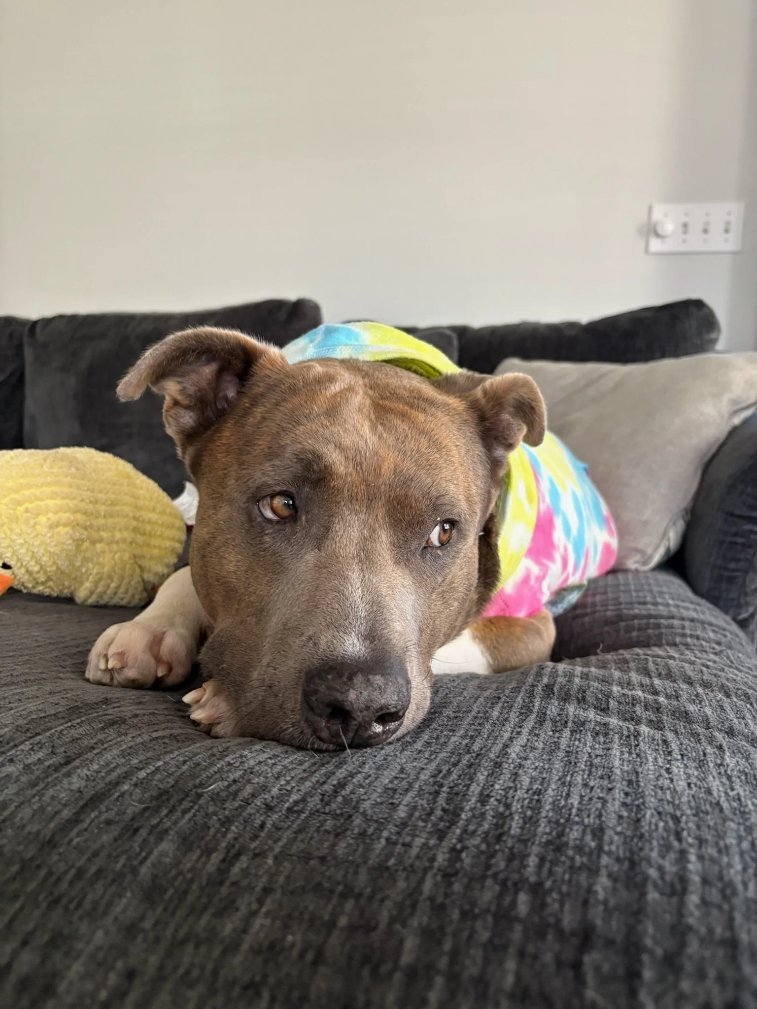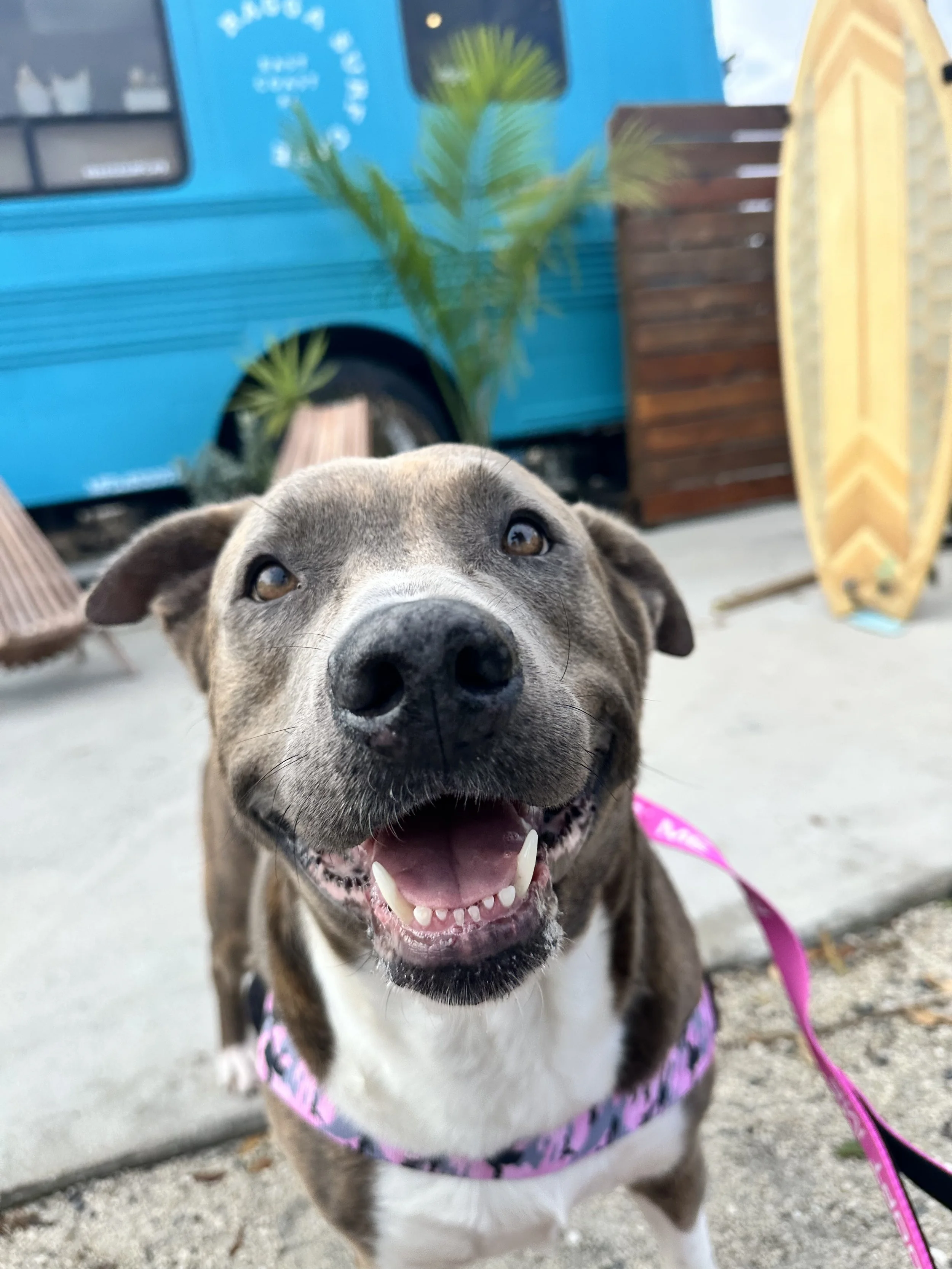 Queenie’s boisterous demeanor and nonstop butt wiggles drew us in immediately. Queenie was found as a stray with another dog. Turns out she had found a friend out and about, as her dog friend had an owner that reclaimed her, and had no idea who Queenie was! This says a lot about Queenie and her infectious personality. It is obvious Queenie has had quite a few litters in her time, and we are so happy that now life gets to be all about her! Queenie is two years old and 70lbs. She has been dog friendly, playful, and is looking for a foster home currently.