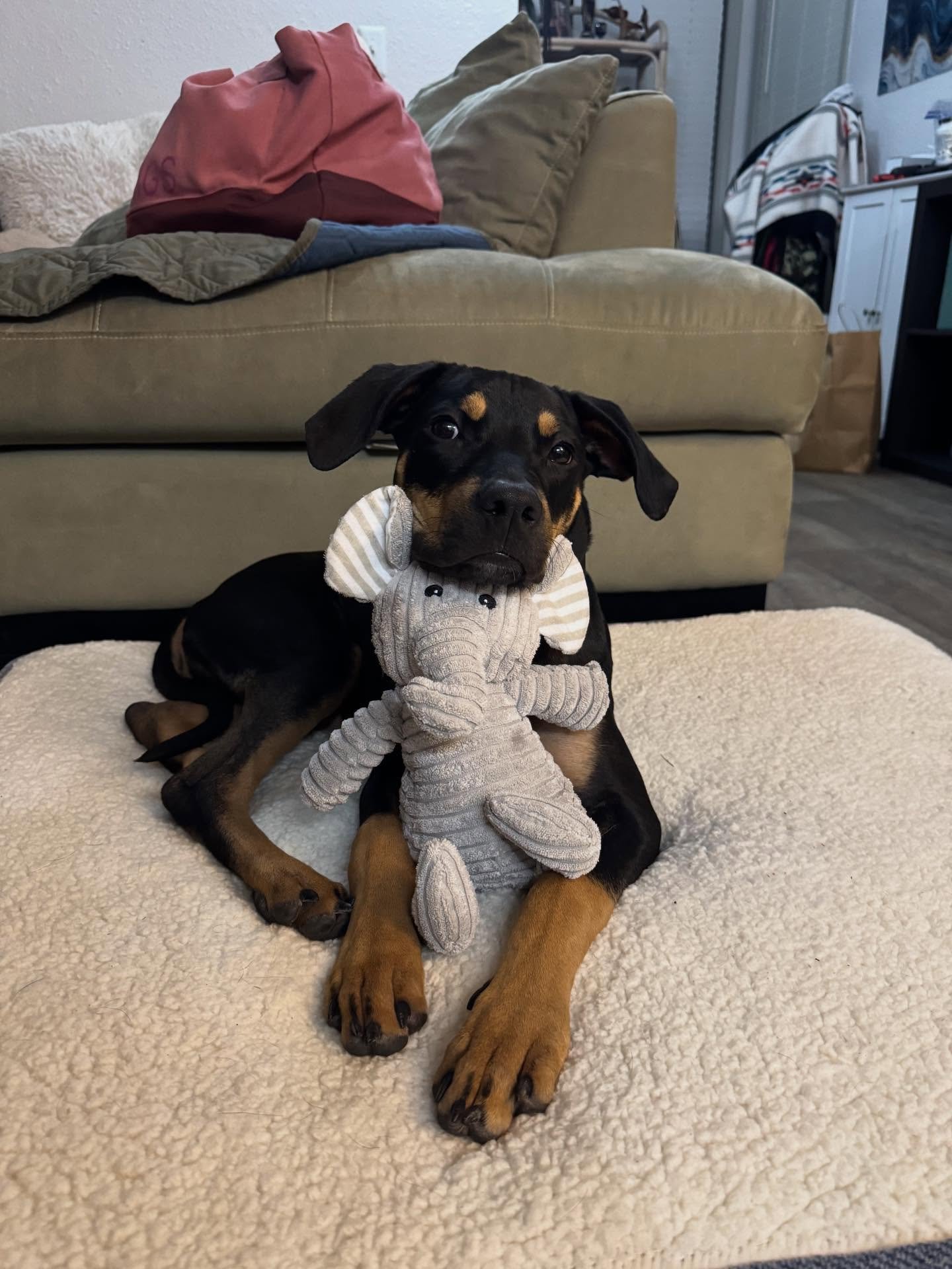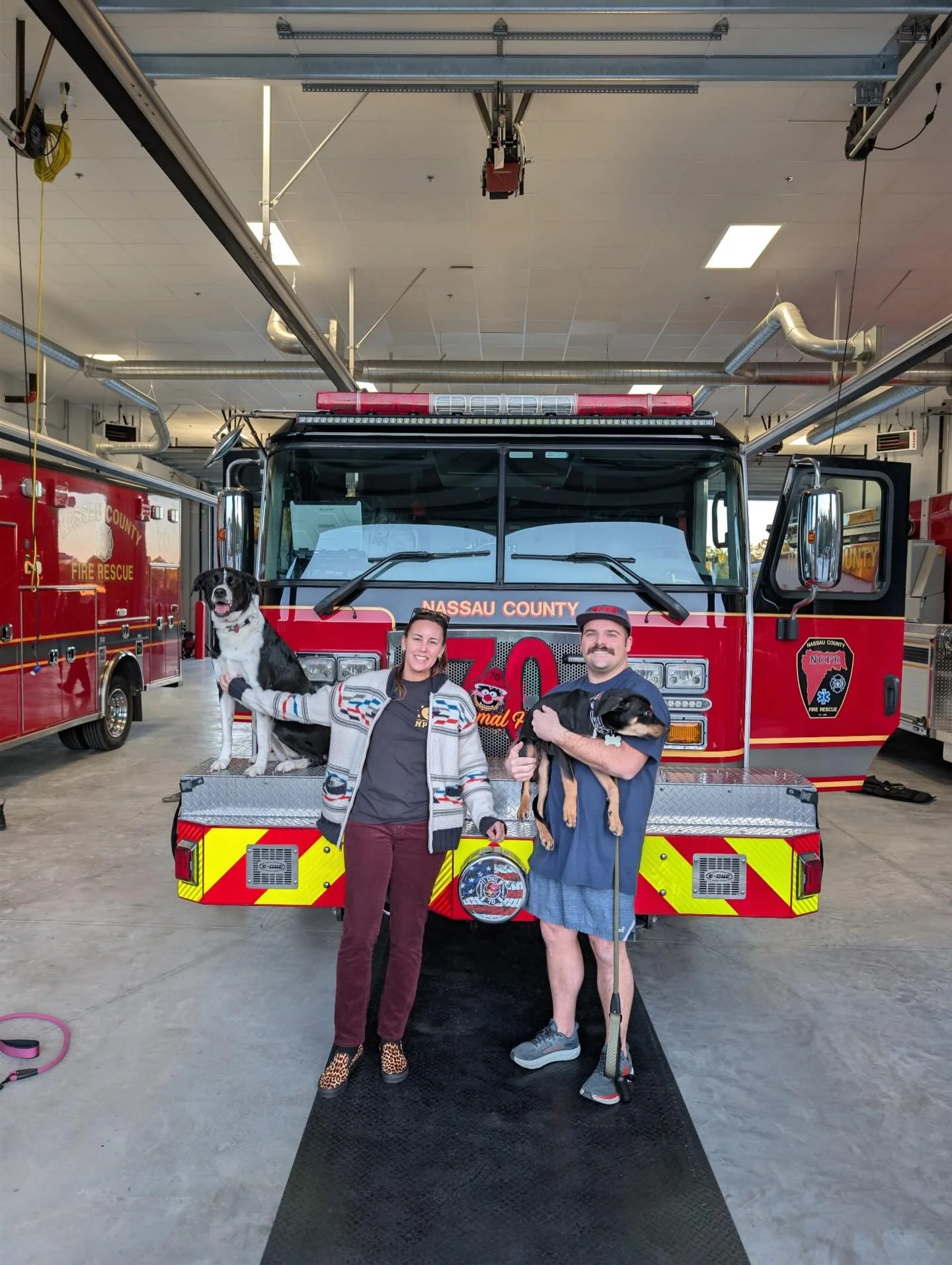 Now his coat is full and healthier than ever, and he’s growing like a weed! 40 pounds at just six months old, and we’re pretty sure he’s determined catch up with his sister’s loooong legs He’s got a built in bestie for playing and cuddles whenever he wants, weekly beach adventures, and even trips to the firehouse to see his dad in action!